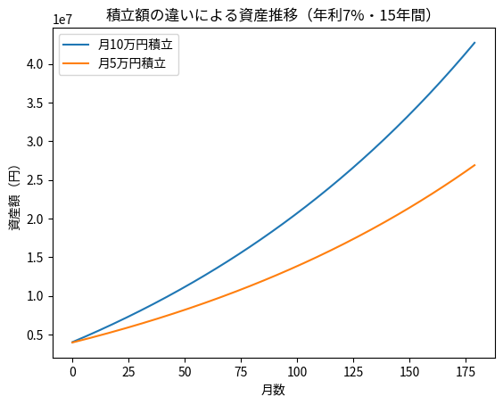 • 月10万円と月5万円の積立でどれくらい差が出るのか